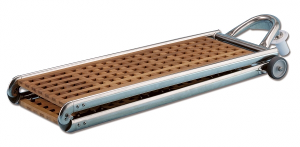 Pasarella. Paslanmaz çelik. 20x40mm oval çelik borudan imal edilmiştir. Katlanabilir. Tekerlek ve kıç montaj parçası dahildir.
