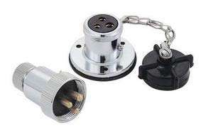 Fiş ve priz su geçirmez kromaj. DC 12/24V-3A. 3 pimli. Ø 40 mm.
