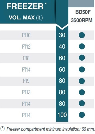 Secop® kompresörler ile yüksek verim. Evaporatör ve termostat ile kombine edilerek özel dolaplar yaratılabilir. Standart hız ayar kiti ile kompresör devri 2000-3500 rpm arasında ayarlanabilir. Devir ayarı sayesinde kompresör gücü farklı sistemlere adapte edilerek enerji tasarrufu sağlanır.