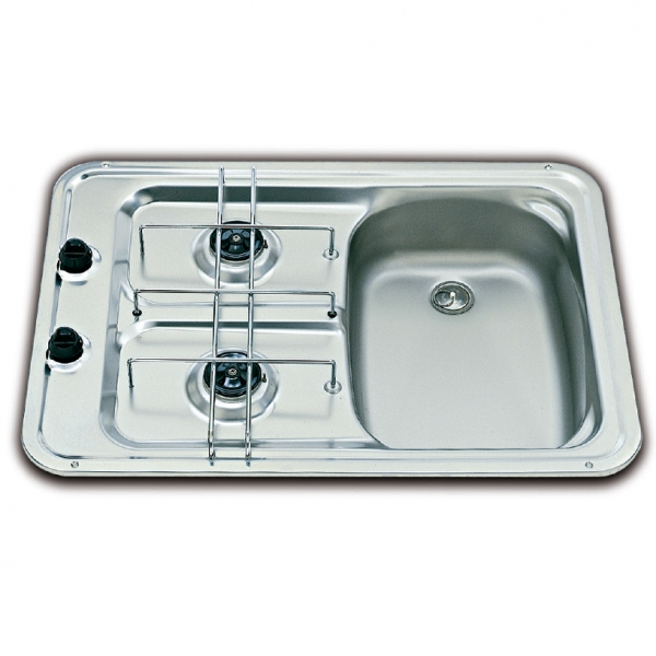 Smev 917 serisi eviyeli, çift gözlü gazlı ocak. Paslanmaz çelik.