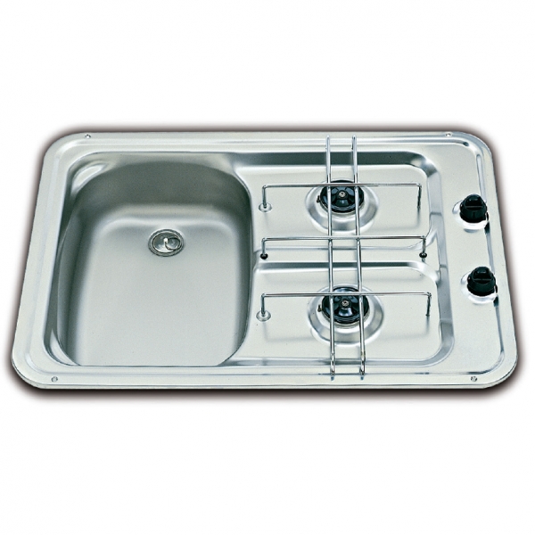 Smev 917 serisi eviyeli, çift gözlü gazlı ocak. Paslanmaz çelik.